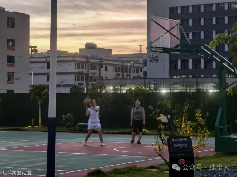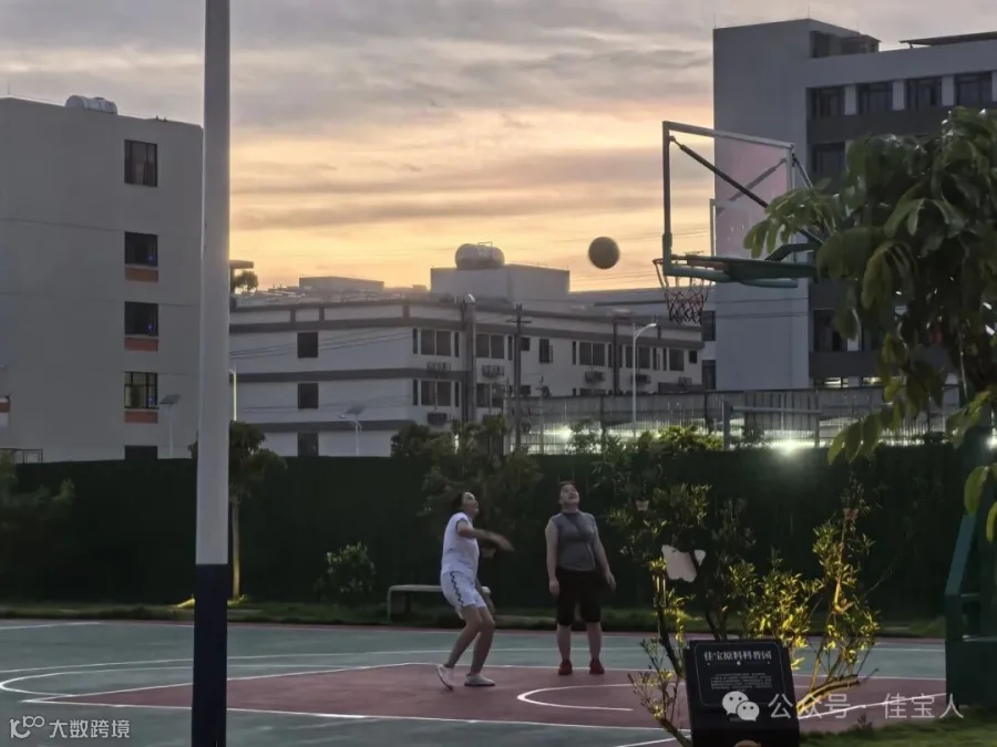 篮球场上,有佳宝人正挥汗如雨,夕阳的余晖洒在她们身上,金色的光芒与汗水交相辉映,展现出青春的无限活力与对运动的热爱。