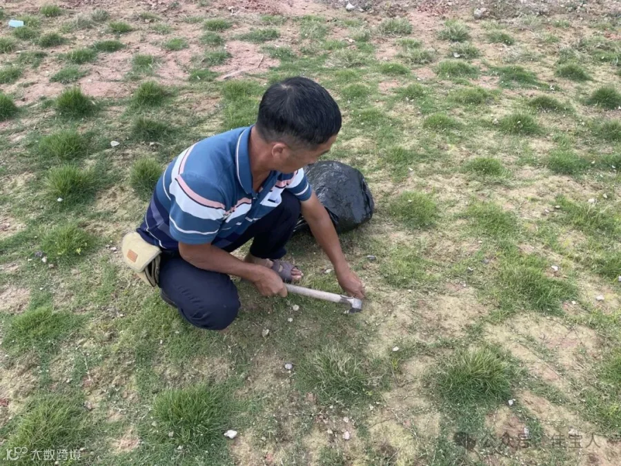 生产车间前面原本有一片光秃秃的空地,这段时间以来,经过他的心灵手巧和坚持不懈,将果园区里长高且多余的草块一点一点地移植到空地上,每天浇水、灌溉,将一片空地变成了一片生机盎然、绿油油的草地。