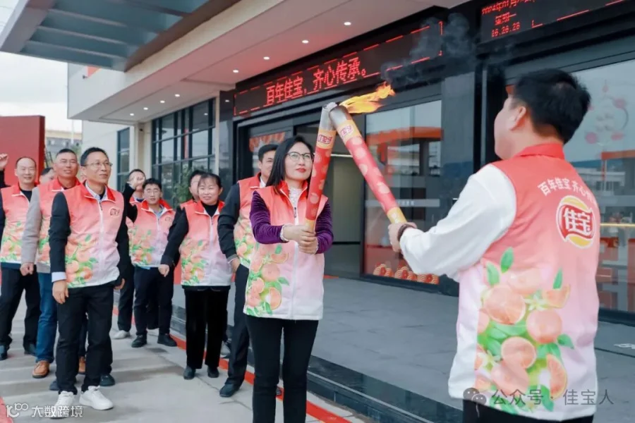 这次火炬传递是从种植者到供应商,从新老一线生产工人到新老厂长,从创始人到现任一把手再到小小佳宝人。佳宝火炬的传递,不仅仅是火种的传递,更是有其深意所在。它象征着来自大自然赐予的果实,象征着我们对每个产品的珍重与尽心,象征着老佳宝人将佳宝的事业和工艺传承给了新的佳宝人,它更象征着佳宝事业人人传递,佳宝精神代代传承!
