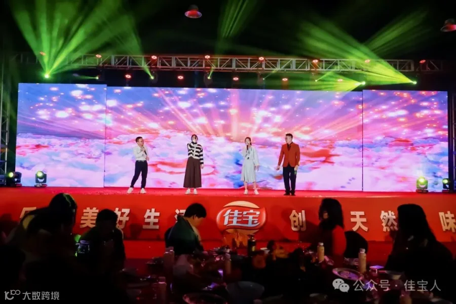 在欢乐祥和的氛围中,大家共同举杯庆祝这一难忘的时刻。晚宴的节目精彩绝伦,令人目不转睛。相声表演妙趣横生,武术表演震撼人心,小品表演幽默风趣,歌唱表演悦耳动听。员工们欢聚一堂,载歌载舞,共同度过了一个难忘的夜晚。在这个温馨的夜晚,佳宝人共同分享着成功的喜悦和未来的憧憬。