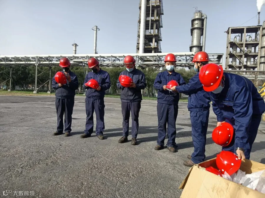 10月15日,众泰煤焦化炼焦一车间,职工拿着新发的安全帽,脸上洋溢着开心的笑容。