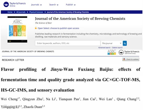 据悉, 《Journal of the American Society of Brewing Chemists》自1976年创刊,是农林科学领域的权威非综述期刊,主要研究方向是生物工程与应用微生物-工程技术领域,始终致力于为科研人员提供前沿、深入的学科洞察,在酿造领域具有较高的知名度和积极影响。金裕馥香白酒风味特征研究成果的发表,助力于金裕馥香白酒的风味特征解析和产品的品牌赋能,对馥香白酒的酿造工艺优化和风味品质提升具有重要的实践价值。
