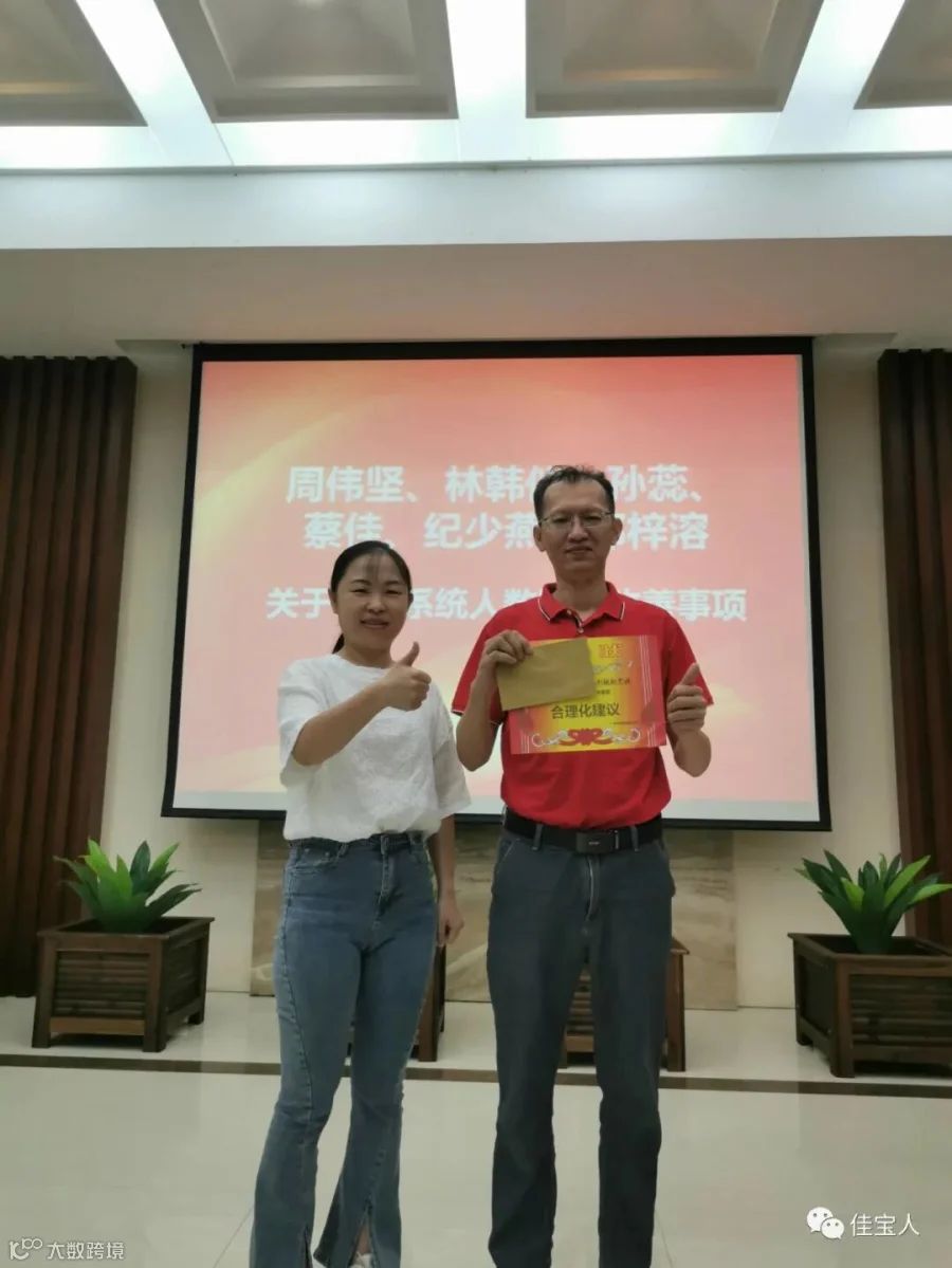 7月29日上午,佳宝集团7月份创新激励颁奖典礼隆重举行,他们从自身岗位出发,不断突破自我,寻找创新改善点,以下是获奖人员: