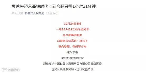 近日,界首市人民政府官方公众号发布了一条新闻,并配文“界首将迈入高铁时代!到