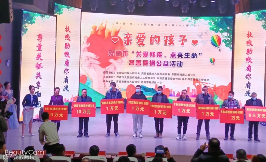2021年12月9日,安徽省残疾人福利基金会联合界首市人民政府,在界首市融媒体中心组织一场“关爱残疾、点亮生命”的大型慈善募捐公益活动。