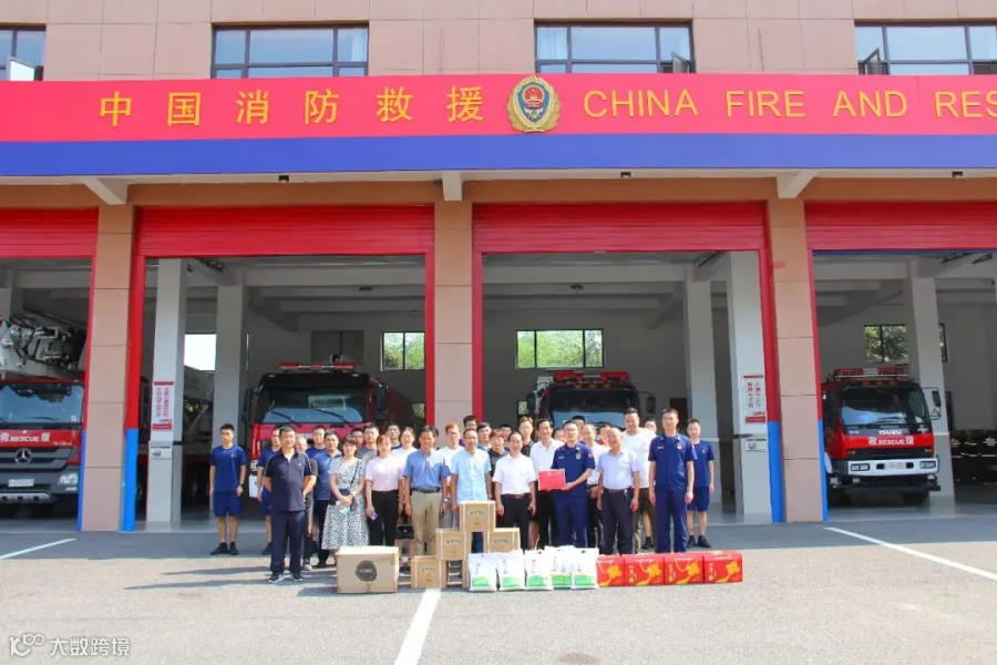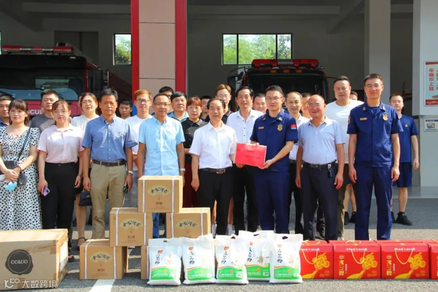 2021年7月31日,八一建军节来临之际,金裕皖酒业党支部书记、工会主席张伟,在界首市东城科技园副主任李阿山、刘利,东城科技园工会主席刘冬等人的带领下,来到界首市消防大队,走访和慰问消防官兵,向他们送上节日的祝福和诚挚的问候,把园区的温暖关爱与和企业的拥护爱戴送到每一位消防官兵心中,并送去了价值近万元的金裕酒庄酒、慰问金,以实际行动向“最可爱的人”致敬。