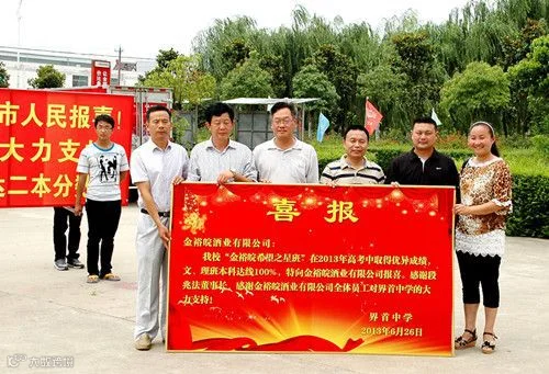 2013年,资助界首中学“金裕皖希望之星”班以100%的二本达线率首创校使高考成绩。