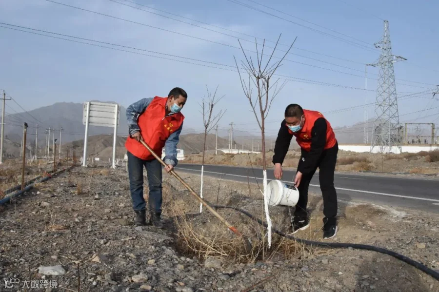 3月12日,塔河矿业各支部党员积极参与到义务植树活动中,经过3个小时的劳动,一排排海棠、柳树整齐排列在矿区。(张鹏)