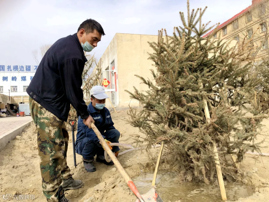3月12日,榆树岭煤矿开展义务植树活动。职工们在矿区绿化带挥锹培土,有的扶苗填坑,进一步美化矿区家园。(杨琪儿)