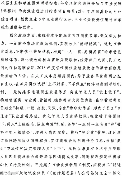 6月10日,河南能源下发《关于印发贯彻开展“学先进、抓落实、促改革”专项工作实施方案》的通知,推荐学习万华化学集团、郑煤机集团、重庆钢铁、中电海康、东航物流等第一批 5 户企业典型改革经验,旨在推动改革落地,激发活力动力,助推企业高质量发展。现转发东航物流典型经验,供各单位学习。