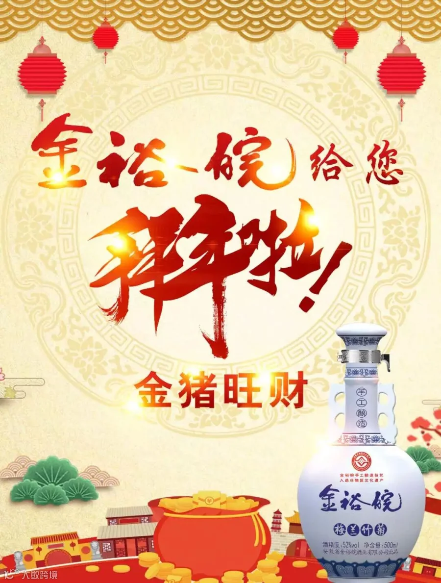 玉犬献瑞辞旧岁,金猪添富迎新春。己亥春节到来之际,祝愿集团每一位员工和您们的家人,祝愿所有关注和支持金裕皖事业发展的各位朋友、酒界同仁新春吉祥、身体健康、诸事如意!