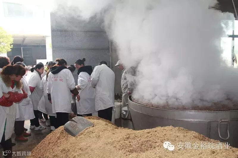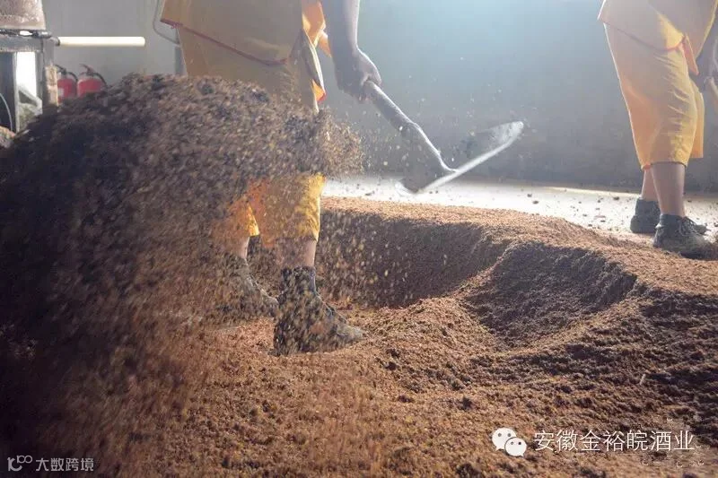 初冬,清晨六点,走进金裕皖大曲车间六班,雾气缭绕,刘秀善和他的工友们已经开始了准备工作,拌料场和甑锅旁,一堆清蒸好的粮食、一堆稻糠;而在不远处的窖池边,酿酒工们开始起窖。这些静静躺在窖池中的糟醅经过80多天的发酵,甘甜的美酒就蕴藏在这些看起来并不起眼的糟醅中。