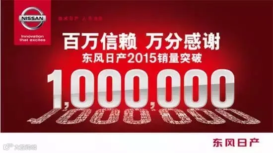 2015年对于绝大多数的汽车企业而言并不是一个好光景,从年初开始,全国车市就陷入了整体下滑的泥沼中,而这种情况在今年四月就早早引发了各车企的官降大潮!一时间,汽车企业连续数月库存高企,经销商则开始面临资金链断裂的风险,车市颓势一直延续到十一月才有所好转。不过在汽车市场整体低落的一片哀鸿中,东风日产却达成了双百万年度目标,高质量跨越百万。