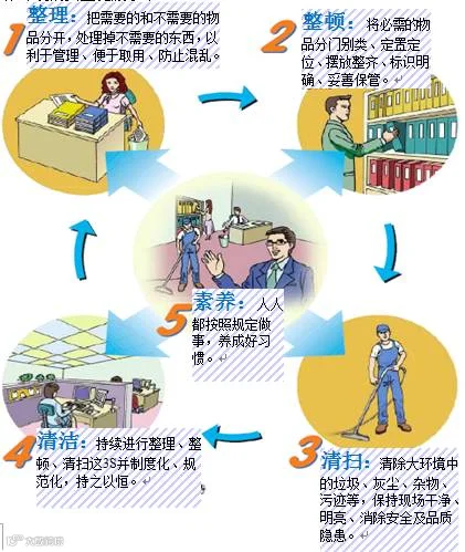 起源于日本的5S(整理、整顿、清扫、清洁、素养)是促进工作环境整洁有效的方法之一。除了强调现场管理外,5S所蕴含的真意是要培养员工养成工作场所整齐清洁、有条不紊的习惯,再藉此而改善工作环境的安全健康水平。