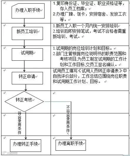 1.7 试用合格的员工由人力资源部会同用人部门通知,填写转正申请表、个人工作总结,经上级主管审批后由人力资源部办理转正手续。