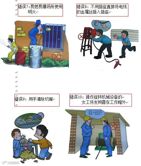 (10)车间内严禁穿拖鞋,女工禁止裸露长发操纵设备,须戴工作帽,将头发放入工作帽内。