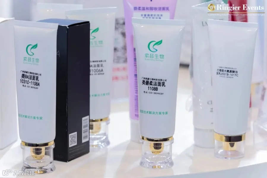 本次展会我们展出外观特色新颖产品达20个,如:洁面冰沙,洁面冰晶,燕窝洁面布丁,小果酱冰沙磨砂膏等。纯氨基酸洁面乳产品达50个,如经济劲爽氨基酸洁面乳,全效无泪氨基酸洁面乳,融水变透洁面膏等。