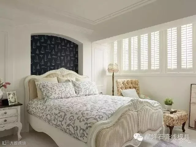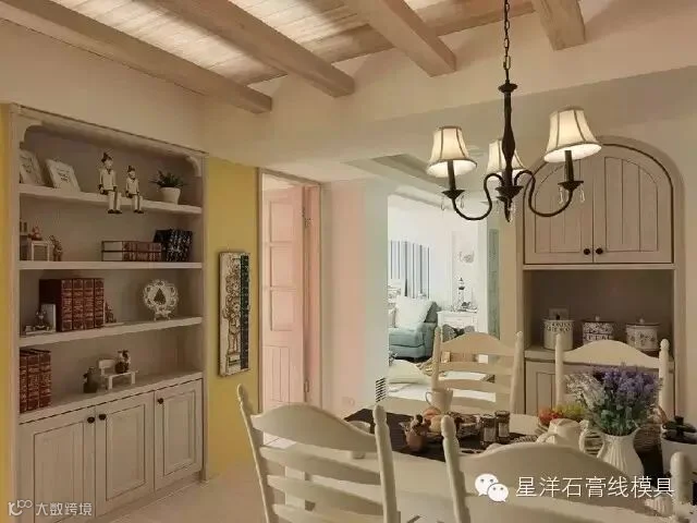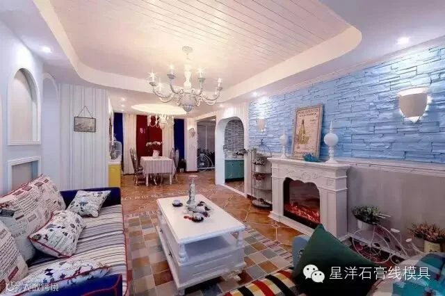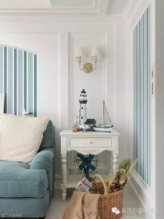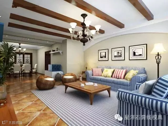 地中海风格中,窗帘、沙发、餐桌布与寝饰等家具都是以天然棉麻织布为主,而田园气息的地中海风,可以在布面上挑选低彩度的小碎花、格纹或是条纹图案,搭配造型圆润的原木家具。