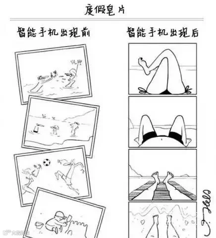 以前海边度假,游泳、玩球;现在去海边度假、拍照、发朋友圈。