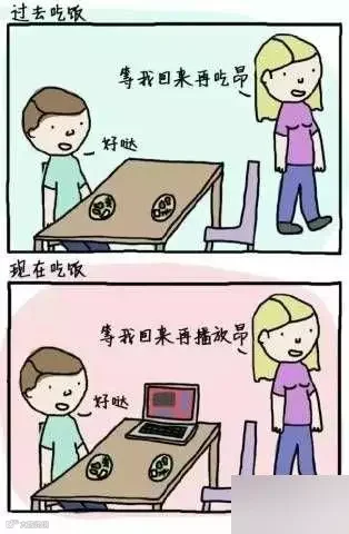 以前吃饭没得玩;现在吃饭玩手机。