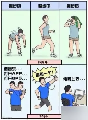 以前跑步,就是为了锻炼身体;现在跑步拼装备,拼自拍。