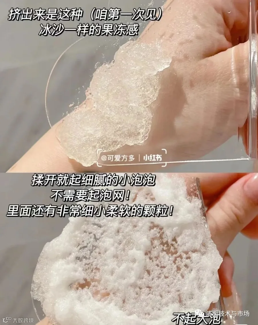 外观QQ弹弹,清洁效果好,去油不紧绷,优良的清洁力温和不上伤肤,洗后不紧绷不干涩、不假滑洗净不残留,深入清洁毛孔;