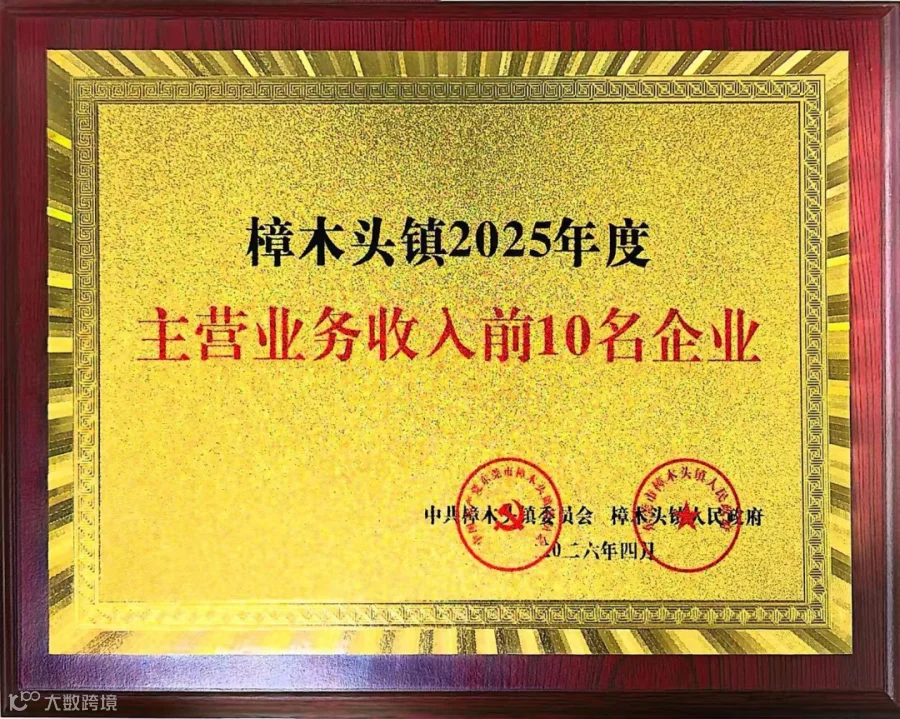 在这份沉甸甸的荣誉榜单中,秦越集团凭借卓越的经营业绩与行业贡献,再次入选“樟木头镇2025年度主营业务收入前10名企业”!