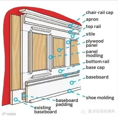 在一些柜子上沿,窗帘盒上也会使用(非石膏材料,MDF 或实木)