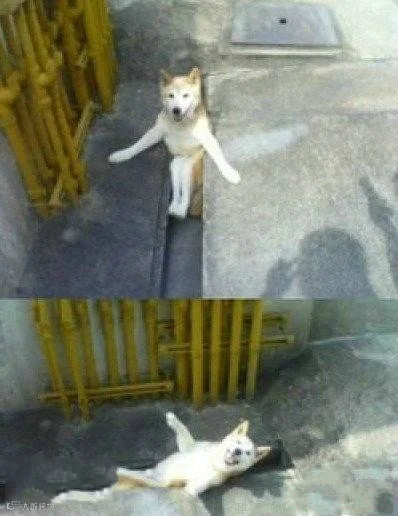 狗狗不小心掉进坑里,那姿势好欢乐。。。