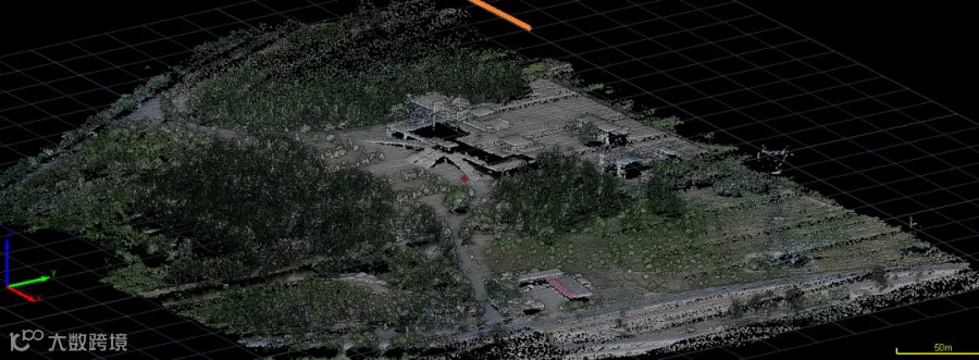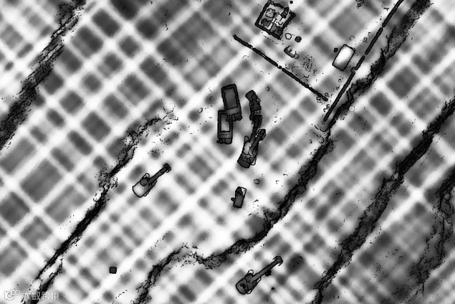 利用L10可快速获取矿区高精度实景三维数据,生成DEM模型、等高线等成果。通过不同阶段获取的DEM模型进行分析对比即可得出精细的挖填方量。点云厚度基本在2cm,点云密度260点/㎡,各类地物点清晰可见。