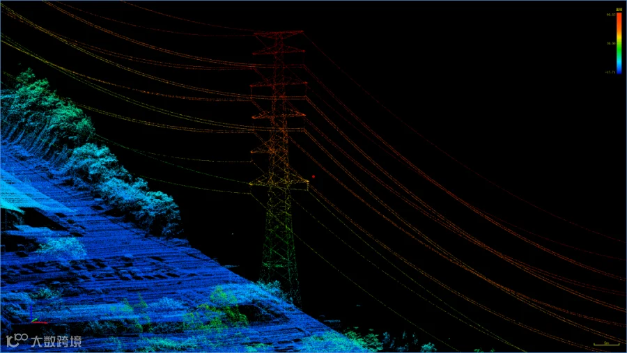 点云厚度优于3cm,点云平面和高程绝对精度优于5cm;杆塔、导线等电力设施的点云数据清晰可辨,还原了电力线路及其周边环境的真实面貌,为后续维护、改造等决策提供了坚实的数据支撑。