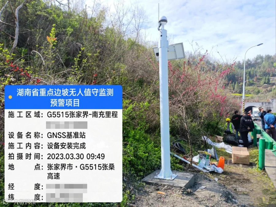 实施内容:安装GNSS接收机、倾角加速度计、雨量计、视频球机、声光报警器等设备。