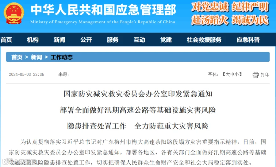 近日,国家防灾减灾救灾委员会办公室印发紧急通知,部署全面做好汛期高速公路等基础设施灾害风险隐患排查处置工作,全力防范重大灾害风险。