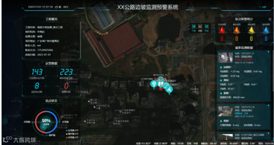 应用效果:项目交付后至今,各监测设备无掉线、整体运行良好。通过技术手段可实现公路边坡地灾监测及预警,助力提高公路管养水平。