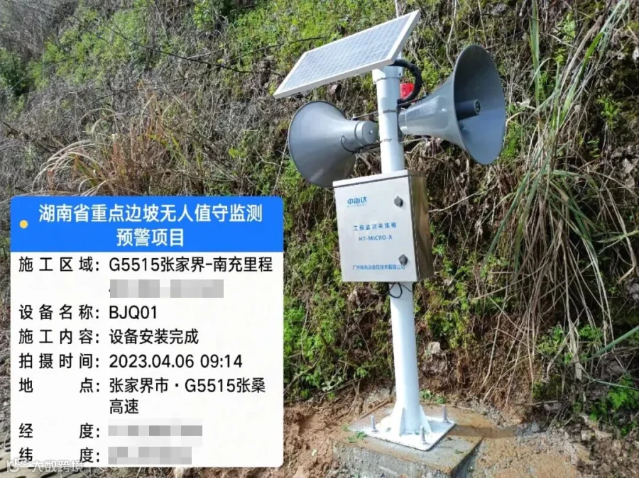 应用效果:实现了边坡表面位移、倾角、振动、深部位移、雨量等全方位监测。当边坡发生异常时,监测预警平台收到预警信息后,可第一时间通过报警广播向路过的车辆和人群发出危险报警,有效保障人民生命财产安全。