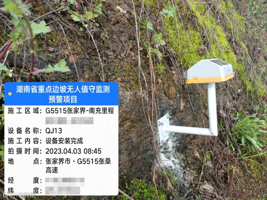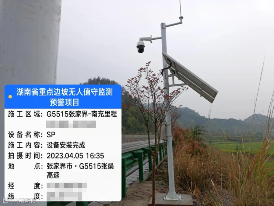 项目背景:受持续降雨或短时强降水等恶劣天气影响,湖南省张家界市辖区张桑(张家界至桑植)高速公路边坡每年雨季会发生水毁,其中有2处重点危险路段的高边坡需要实现自动化监测。