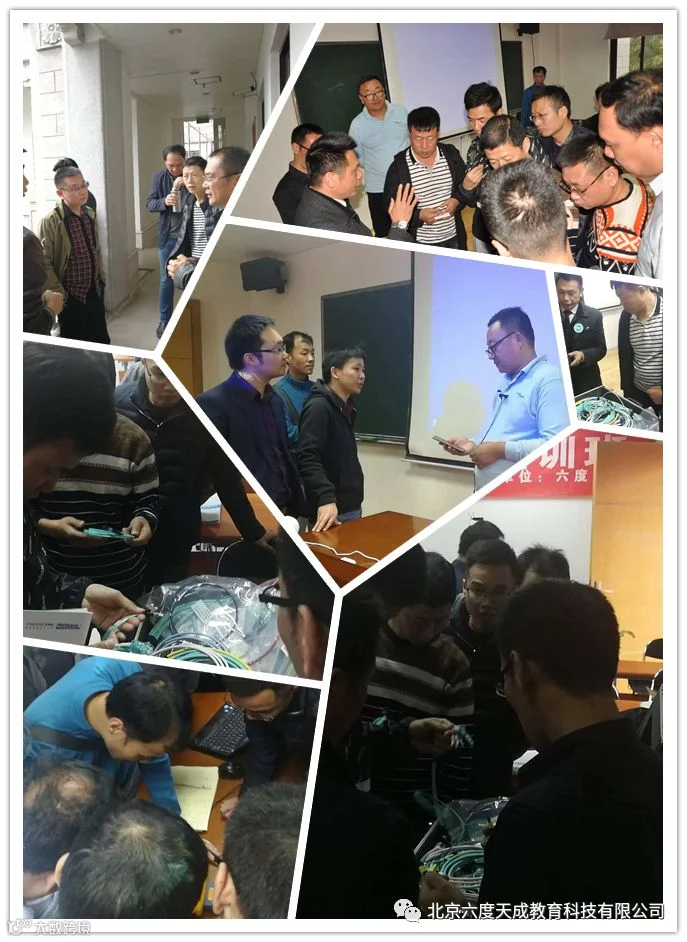 智能建筑弱电工程师认证培训总计六天的课程,分别从楼宇自控系统、综合布线系统和安全防范系统三个大系统开讲。此外,本次弱电中级班增加了综合布线福禄克测试讲解环节,并有2012年六度教育老学员,蓝思通信蓝总,携带数据中心高密度光纤产品MPO,到现场与本次学员进行产品介绍、认知和交流。