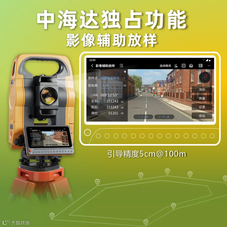 中海达独占功能,影像辅助放样。放样点在哪,看屏幕就可以了。引导精度5cm@100m。