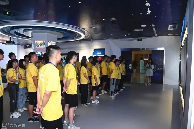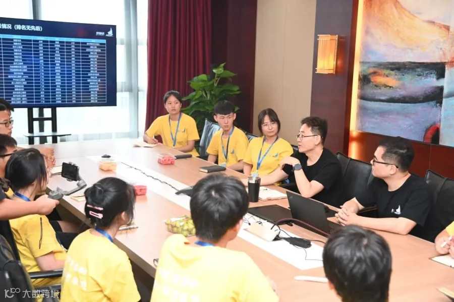 ▲工作人员介绍公司总部及展厅环境