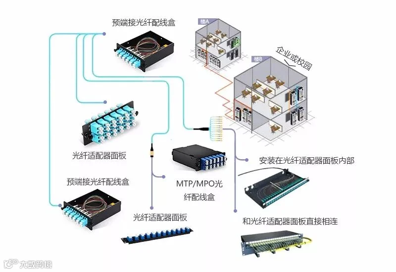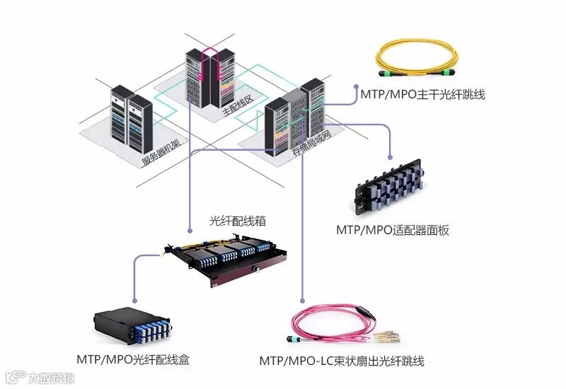为了适应高速率网络的需要,MTP/MPO布线系统需要用到多种不同类型的设备来满足多种布线需求,以下是MTP/MPO布线系统需要用到的四种设备的介绍: