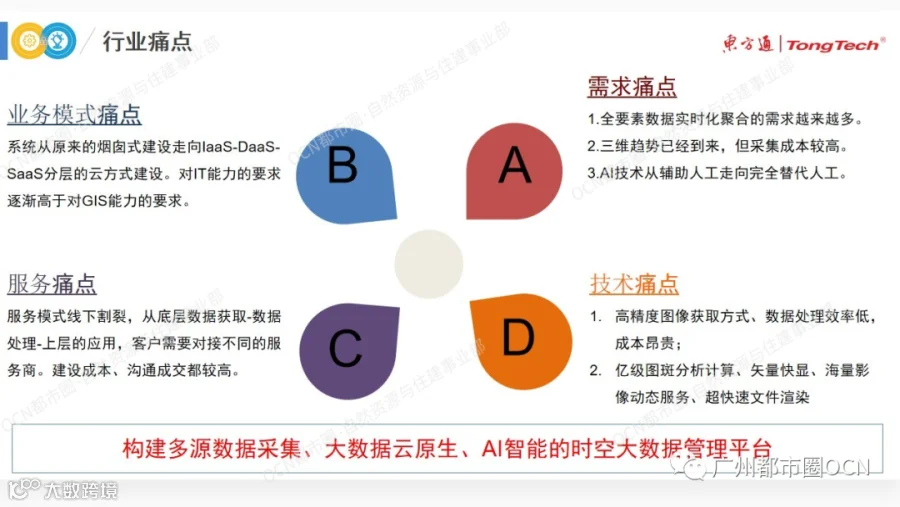 如何解决数据采集、质量、共享、安全及实时性等问题?如何将汇集起来的数据最大程度地发挥其价值?带着以上问题,张靖宇介绍了东方通时空大数据管理平台,并围绕“入、存、管、出、算、智、视、用”等方面阐述东方通对地信产业数据平台的思考以及分享相关案例。