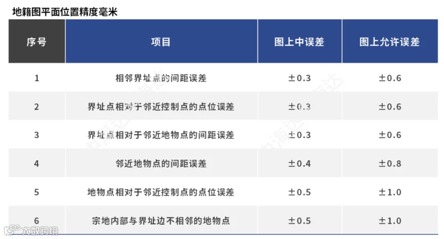 ◎界址点间距中误差:地籍界址点间距及界址点与邻近地物点间距不大于图上±0.3mm。