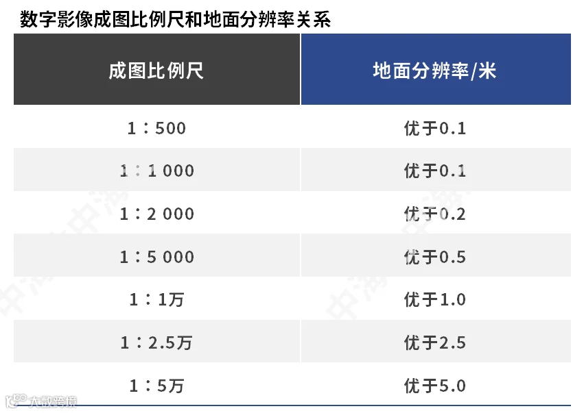 DOM:地面分辨率不大于万分之一成图比例尺分母。
