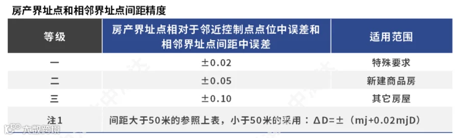 ◎房产测绘界址点测量:二级界址点点位中误差不大于5cm,即1:500比例尺分幅图上不大于图上±0.1mm。