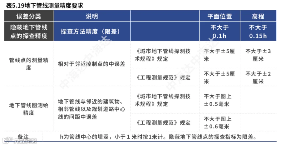 ◎地下管线与邻近的建筑物、相邻管线以及规划道路中心线的间距中误差不得大于图上±0.5mm。(工测规范上为不大于图上±0.6mm)。