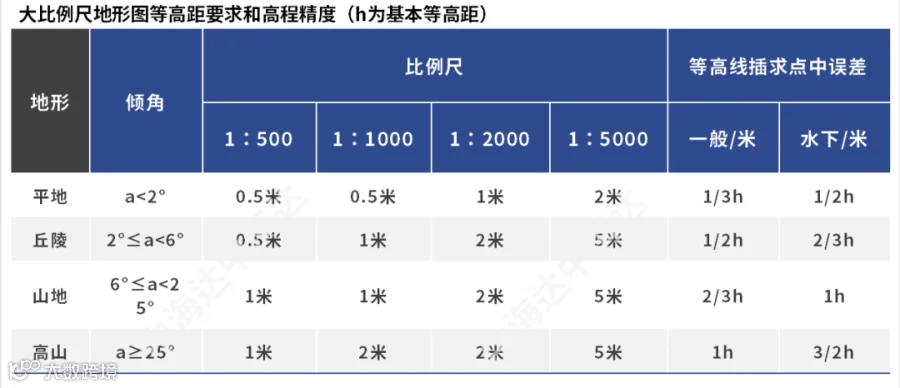 DEM:1:500至1:2000比例尺DEM格网尺寸不大于千分之一比例尺分母,1:5000至1:10万不大于万分之五比例尺分母。