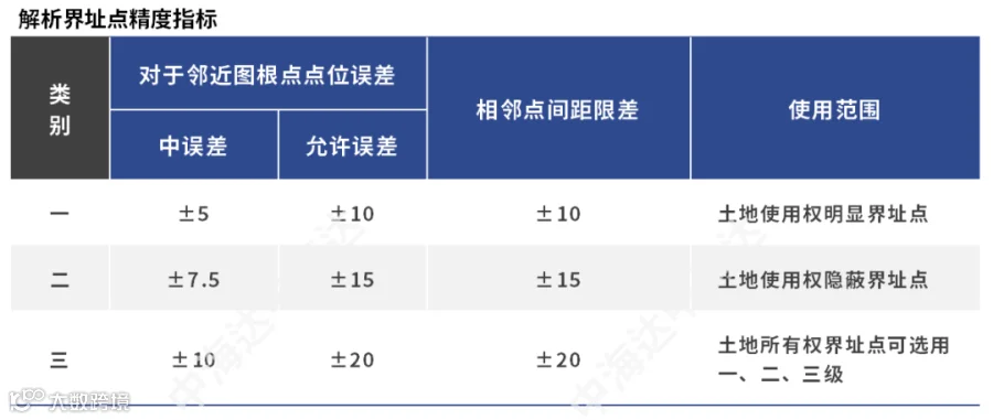 ◎地籍测绘界址点测量:明显界址点点位中误差不大于5cm,隐蔽的放宽0.5倍到7.5cm,精度差的继续放宽到10cm。