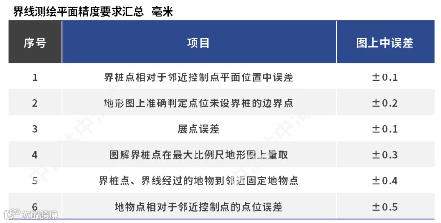 ◎界址点点位中误差:地籍界址点相对于邻近地物点点位中误差不大于图上±0.3mm。