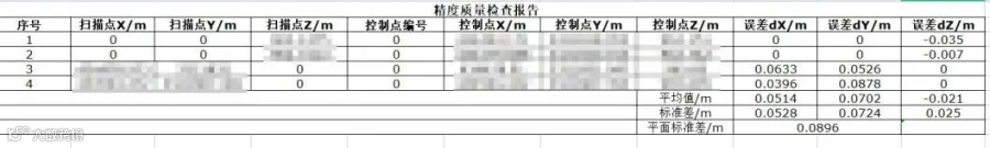 统计平面精度,平面精度标准差为0.0896m,满足要求。