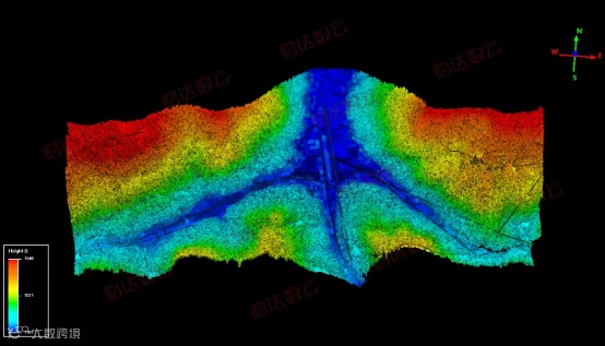 针对测区高海拔、高落差地形特点,本次项目采用了Long120六旋翼无人机搭载ARS1000L激光雷达进行仿地飞行作业,不用分割测区,减少了起降架次,更减少了高度差对数据精度的影响,外业工作更高效。